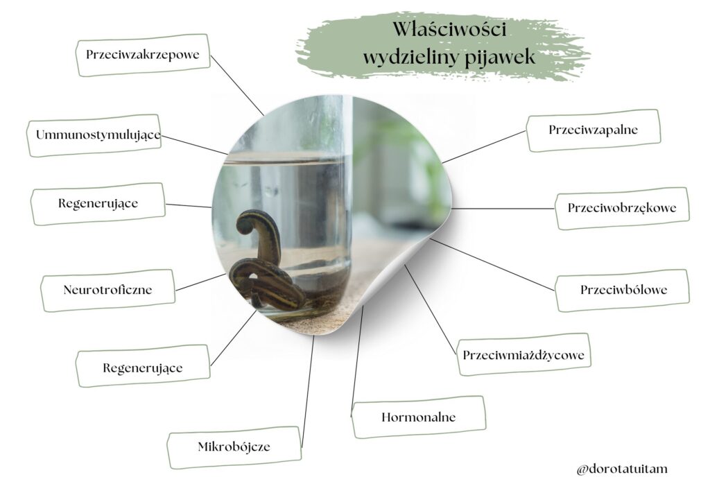Wydzielina pijawki ma wiele właściwości, m.in.:
